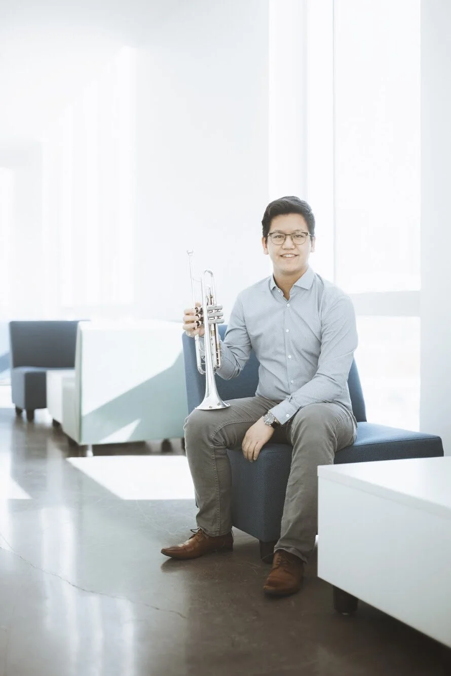 Kevin Yue (he/him) is a versatile musician based in Treaty 6 territory (Edmonton, Alberta). Trained in the traditions of western Classical music, Kevin can regularly be seen in the trumpet section of the Edmonton Symphony Orchestra. He is also active as a guest musician with other ensembles in Edmonton such as Edmonton Opera, Alberta Ballet, the Royal Canadian Artillery Band and River City Chamber Orchestra. As a chamber musician, Kevin serves as a member of the Coyote Brass Quintet and has also worked with groups such as Capital Brass, PANIK Brass, ISO Brass, and Brassed. A versatile performer, Kevin has also appeared with artists such as Téa G, The 9s, and his own group, Thursdays. Kevin has enjoyed attending summer festivals such as Domaine Forget and has appeared in masterclasses for Philip Smith, Sergei Nakariakov, Chris Gekker, and Jeroen Baerwarts.